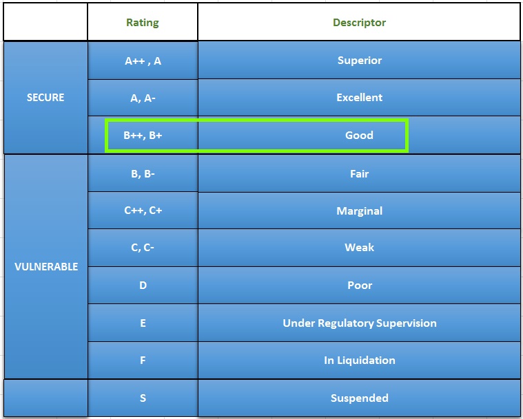 A.M.Best is the world’s leading credit rating agency, focusing on insurance and reinsurance industry. Founded in 1899, A.M.Best has issued ratings of more than 3500 organizations in over 90 countries. B++ rated by A.M.Best is equivalent to BBB+ rated by Standard & Poor’s (S&P), which means that the company has a good ability to meet its ongoing insurance obligations. This is PVIRe’s first rating upgrade since being rated B+ by A.M.Best in 2012. |