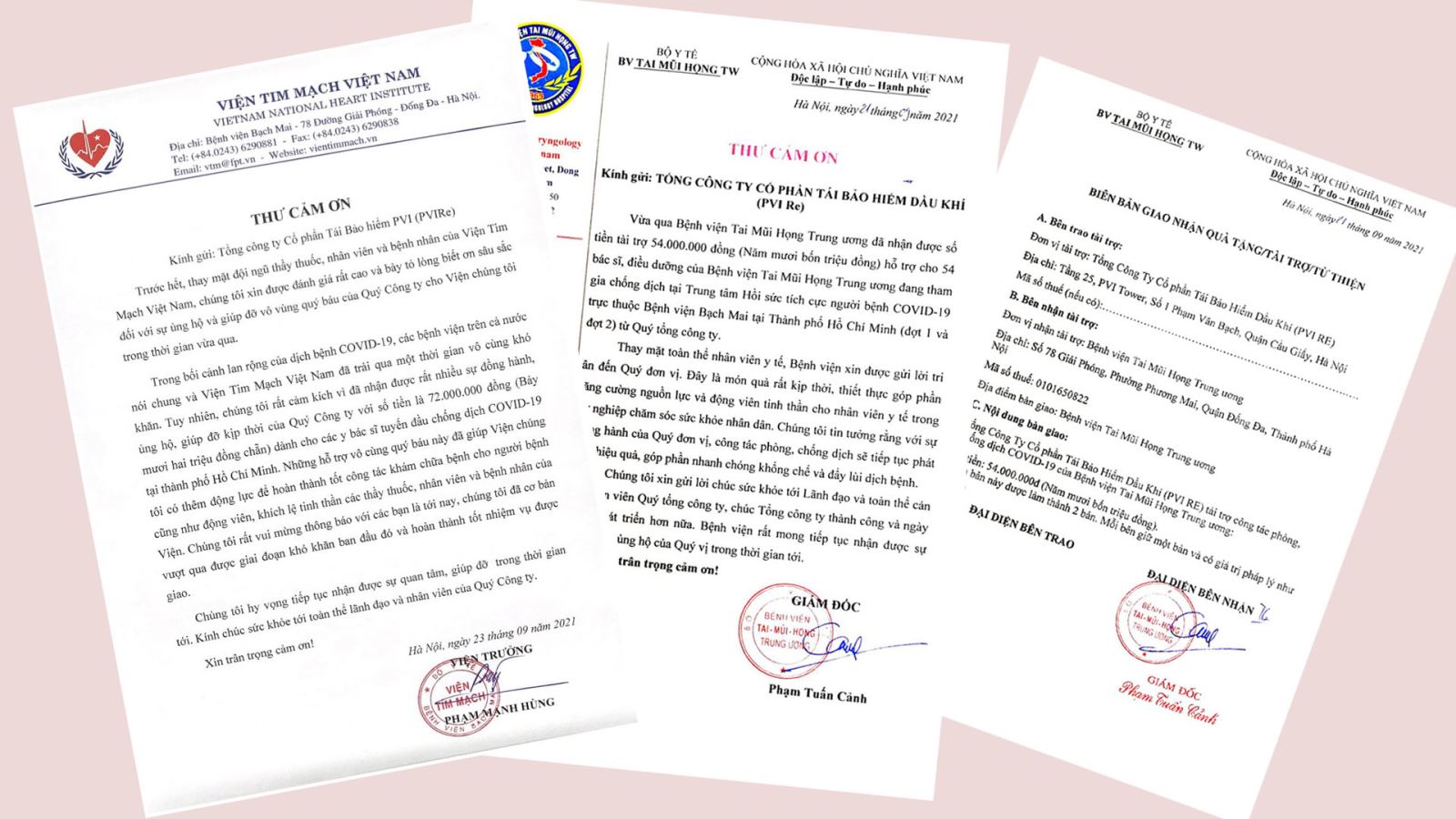 Qua một tuần phát động chương trình hỗ trợ lực lượng bác sĩ, điều dưỡng tại ba bệnh viện: Viện Tim mạch Quốc gia (BV Bạch Mai); BV Tai-mũi-họng TW; Viện huyết học truyền máu TW đang tham gia chống dịch tại TP. Hồ Chí Minh, Quỹ Hạnh Phúc PVI Re đã nhận được sự hỗ trợ của các tổ chức, cá nhân, MTQ với tổng số tiền 251 triệu đồng cùng với những lời động viên, chia sẻ, lời chúc mạnh khỏe và chiến thắng gửi đến đội ngũ y bác sĩ, điều dưỡng đang công tác tại các bệnh viện dã chiến miền Nam. Rất nhanh chóng, vào đúng ngày Tết Trung thu – Tết đoàn viên, toàn bộ số tiền ủng hộ đã được trao tặng đến đội ngũ bác sỹ, điều dưỡng như một món quà nhỏ thay lời cảm ơn dành tặng cho các “thiên thần áo trắng” đang xa nhà thực hiện nhiệm vụ chống dịch tại các bệnh viện dã chiến tại miền Nam.