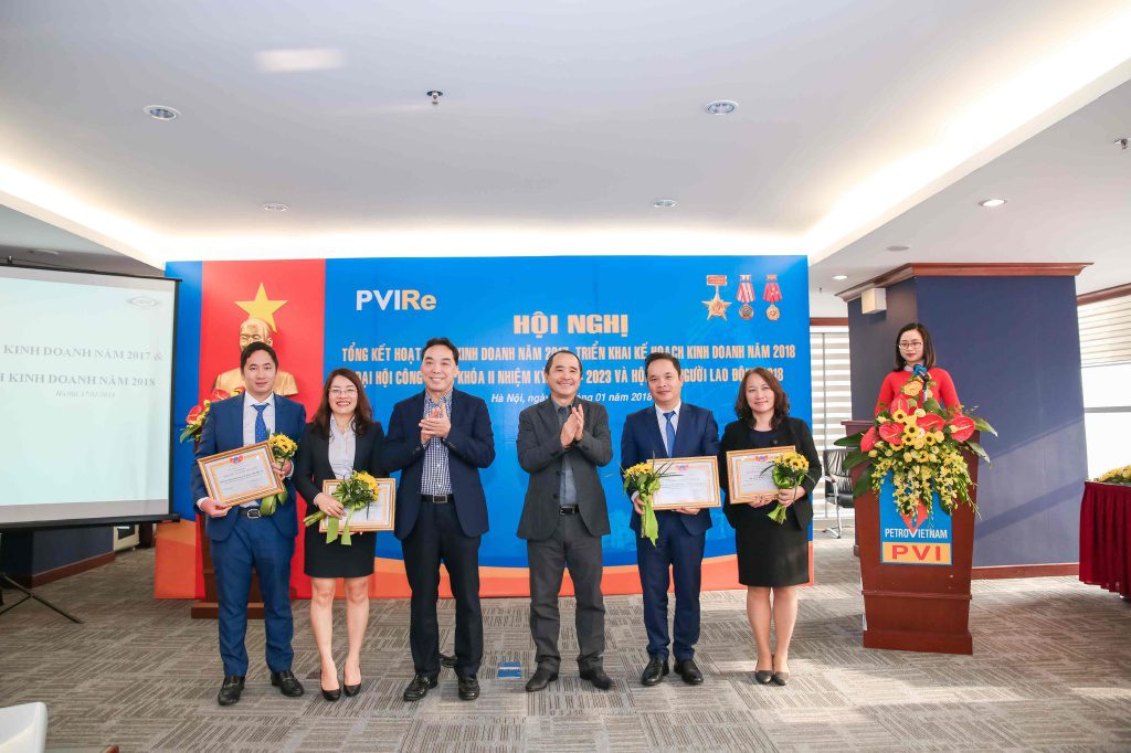Để ghi nhận những nỗ lực, cố gắng của cán bộ nhân viên trong hoạt động kinh doanh năm 2017, tại Hội nghị, Lãnh đạo đã trao bằng khen các danh hiệu thi đua khen thưởng cho các Tập thể và cá nhân xuất sắc đã góp phần vào kết quả kinh doanh chung của PVIRe năm 2017.